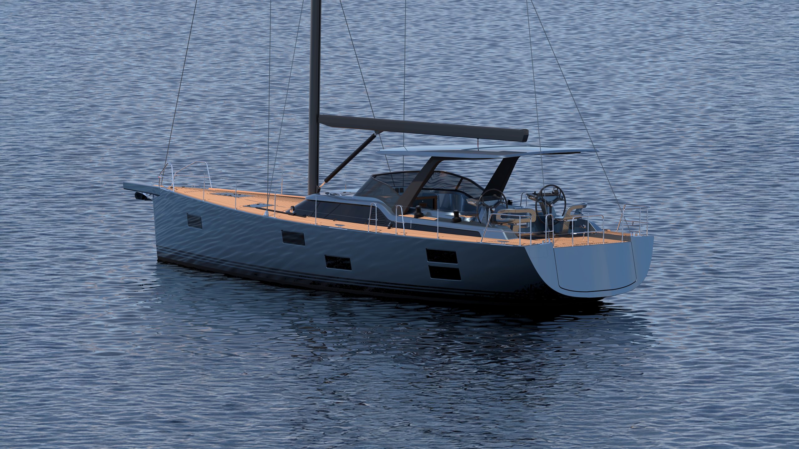 Options in sailing systems, set-up and management are many. Carbon or aluminium spars, cutter or sloop, in-mast or slab-reefing, and for downwind sails a carbon bowsprit with integral furling. The tall, powerful rig makes her a good fast sailor in light winds, meaning more time sailing than motoring. And, importantly, however sailed, the good pairing of powerful rudder and optimised moderate draft keel provides the exact right feedback to the hand on the helm for an awareness of the yacht’s tolerances.